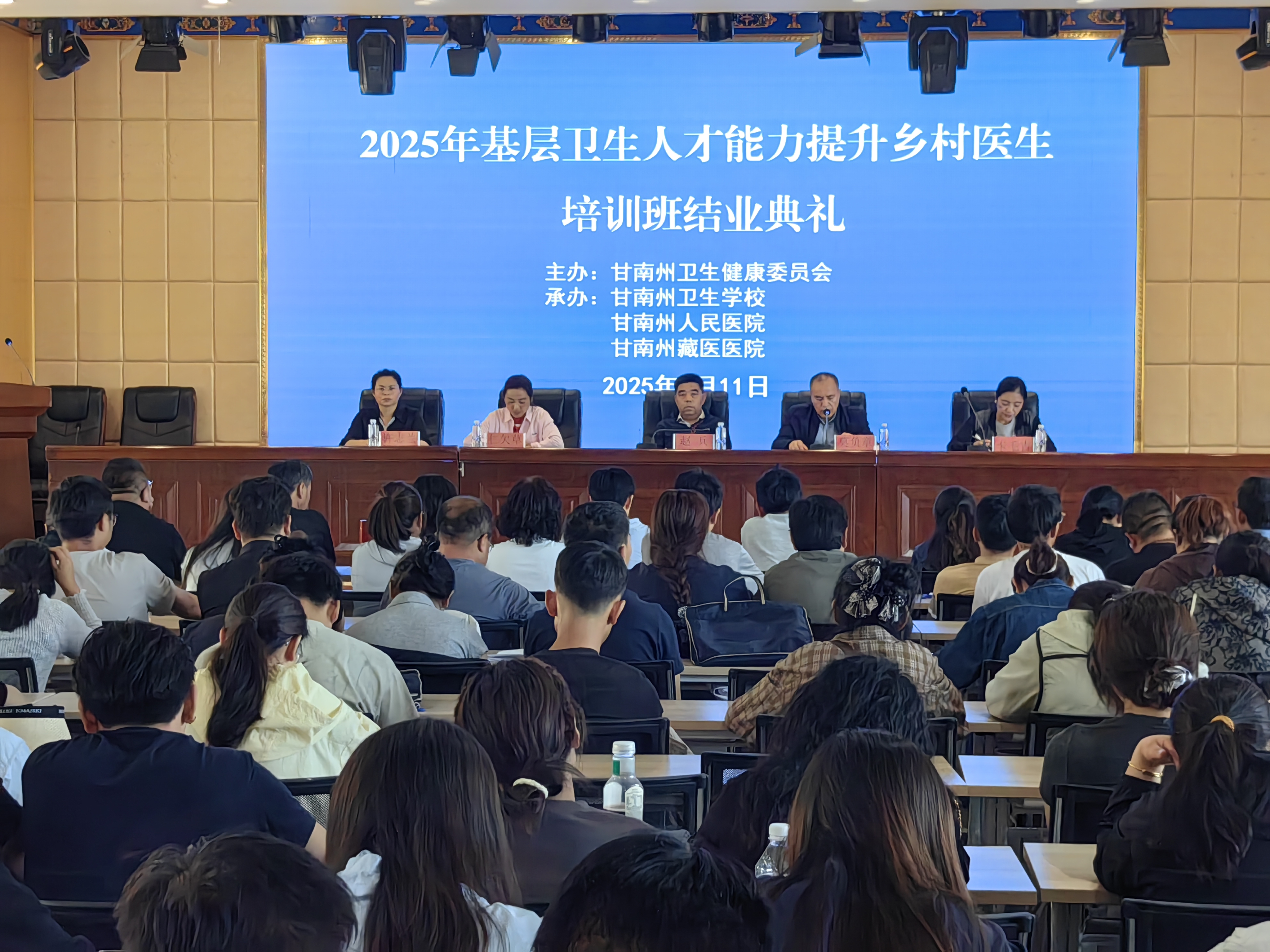 2025年7月11日15时,“2025年基层卫生人才能力提升乡村医生培训班”结业仪式在永利yl23411综合服务楼五楼多功能厅举行。公司党总支书记赵兵、副董事长莫负章及州人民医院、州藏医院医务科负责人和两地100名学员共同参加结业仪式。